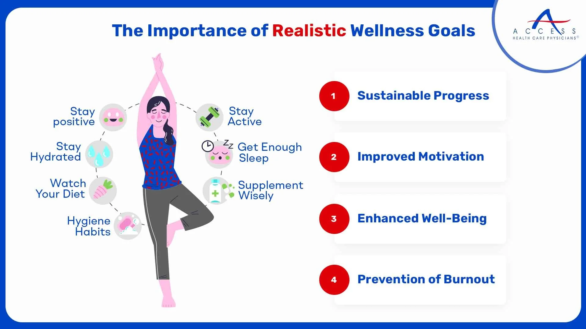 Wellness goals should work with your lifestyle, not against it. Instead of drastic changes, aim for goals that feel achievable and manageable. For example, focus on moving your body a few times a week, cooking at home more often, or improving sleep habits.